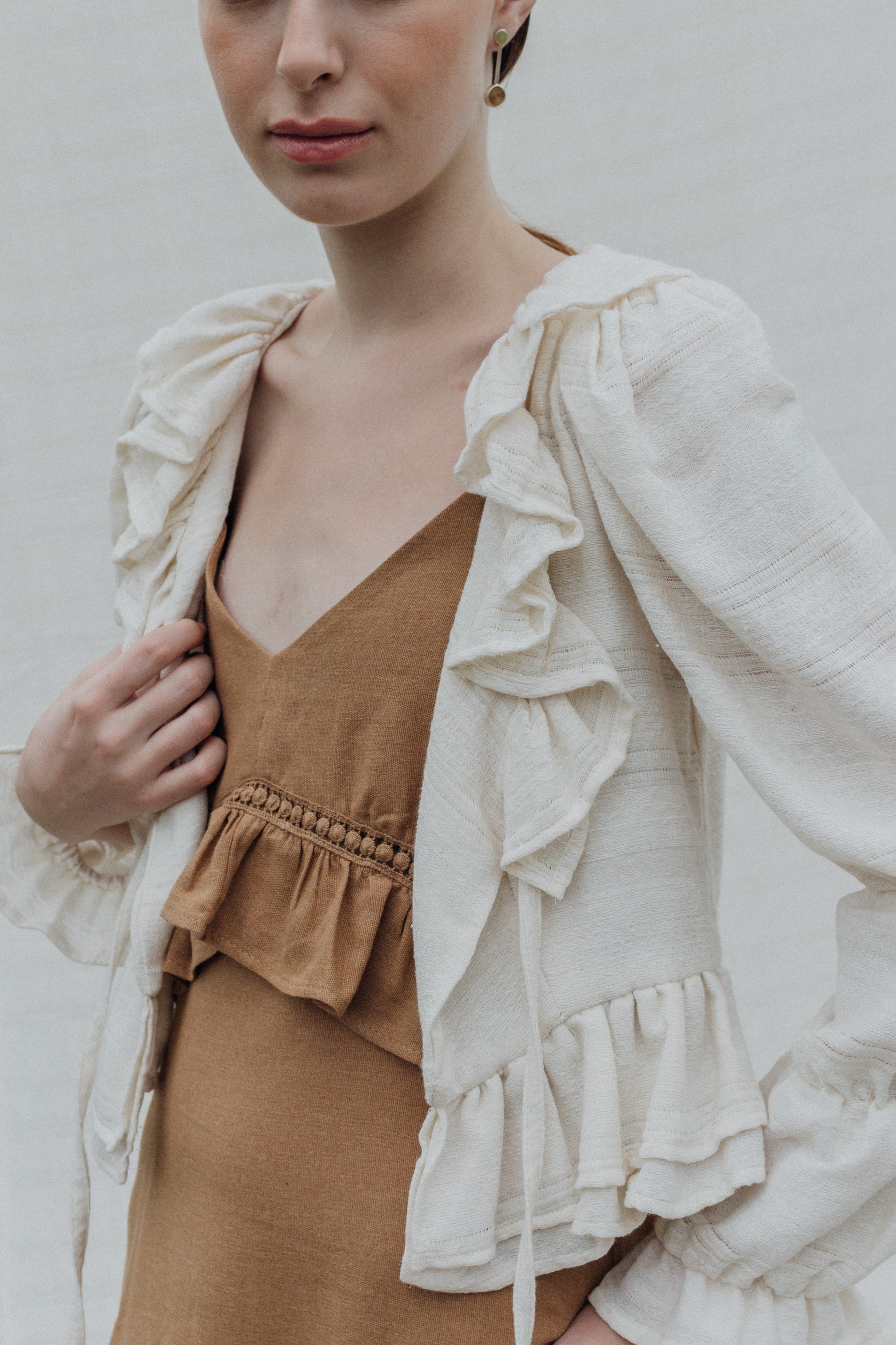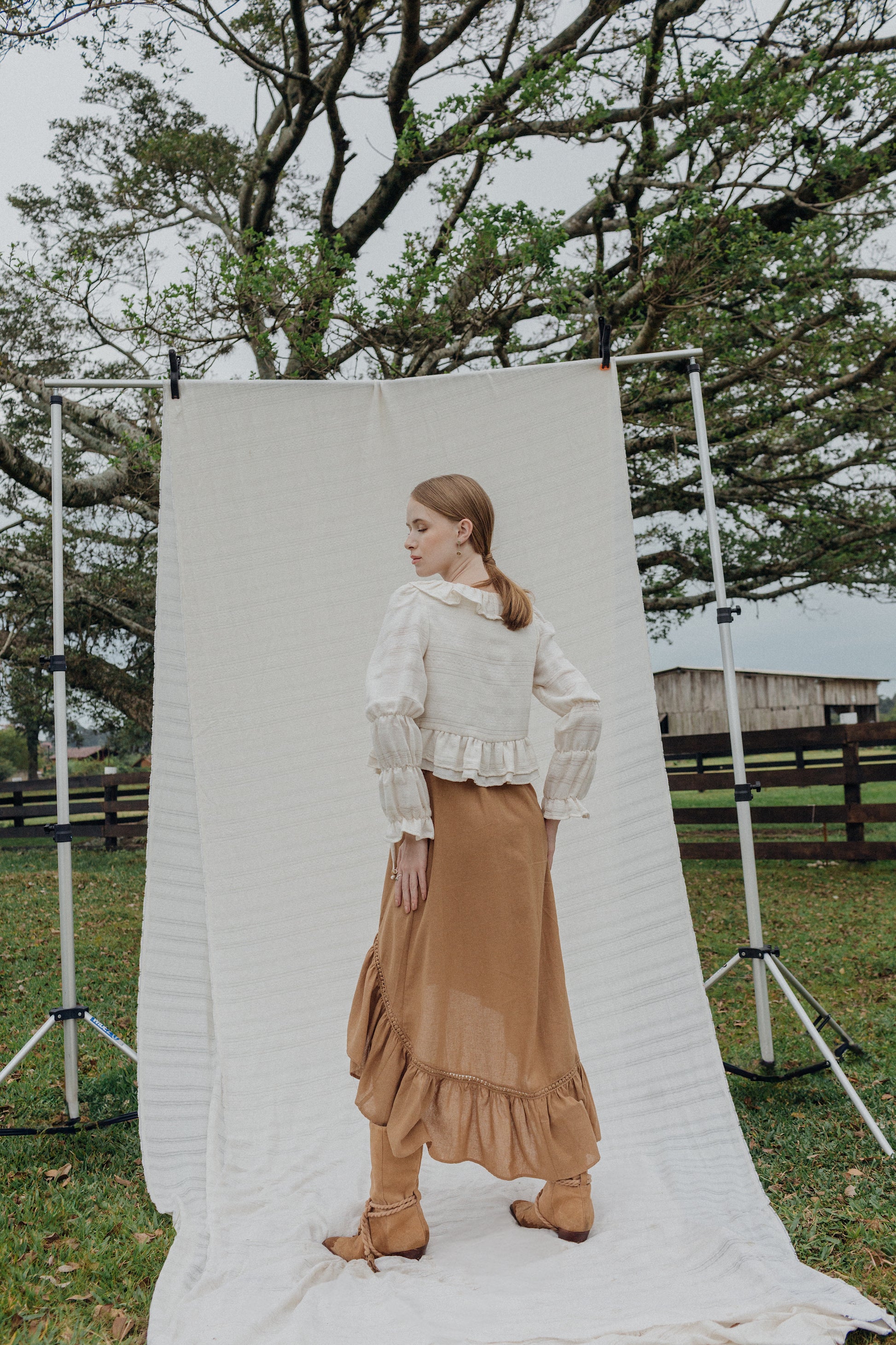 Tecido algodão orgânico que já nasce colorido. Ele vem lá da Paraíba e tem certificação orgânica internacional.