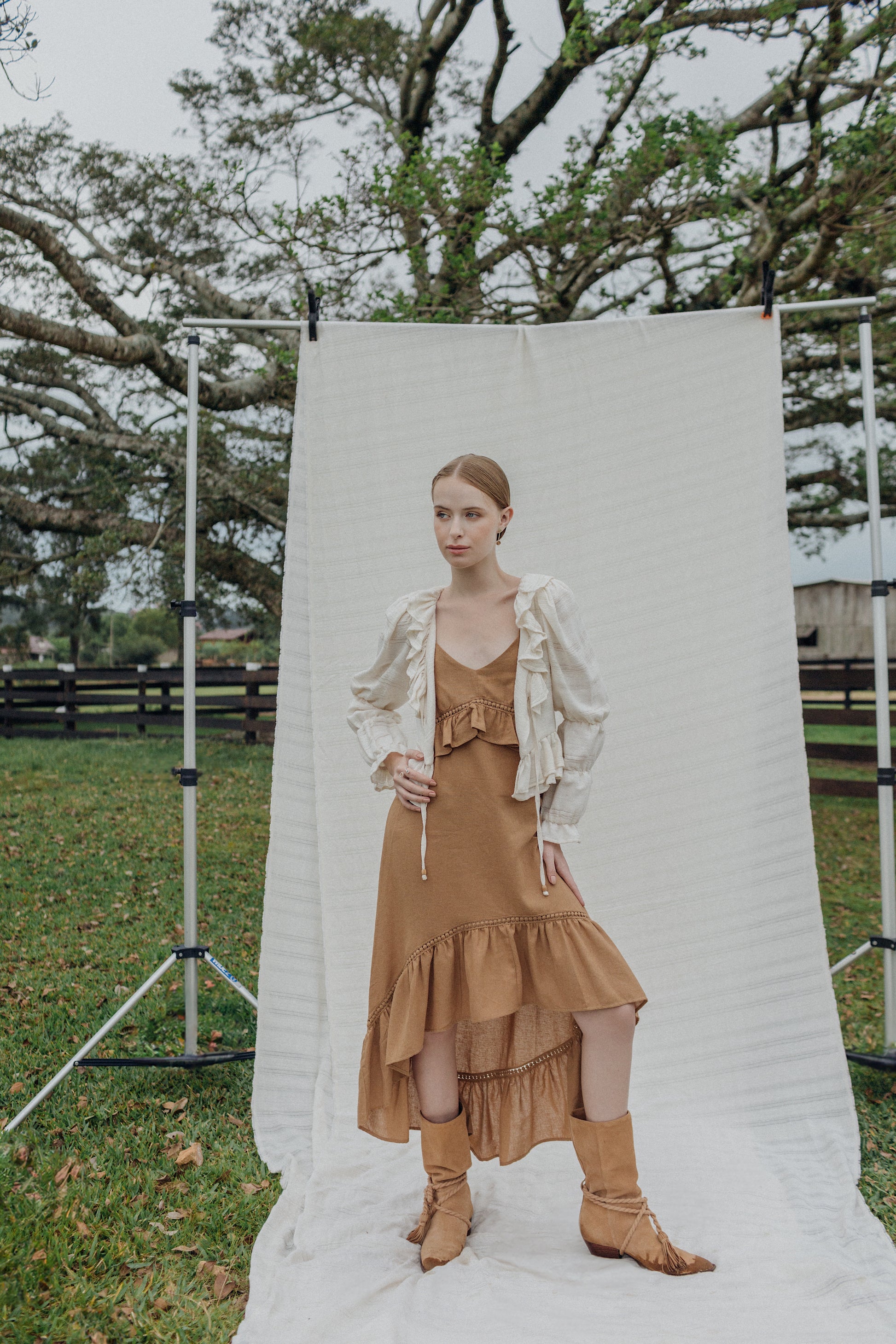 Vestido versátil, elegante com estilo românico Boho Chic.